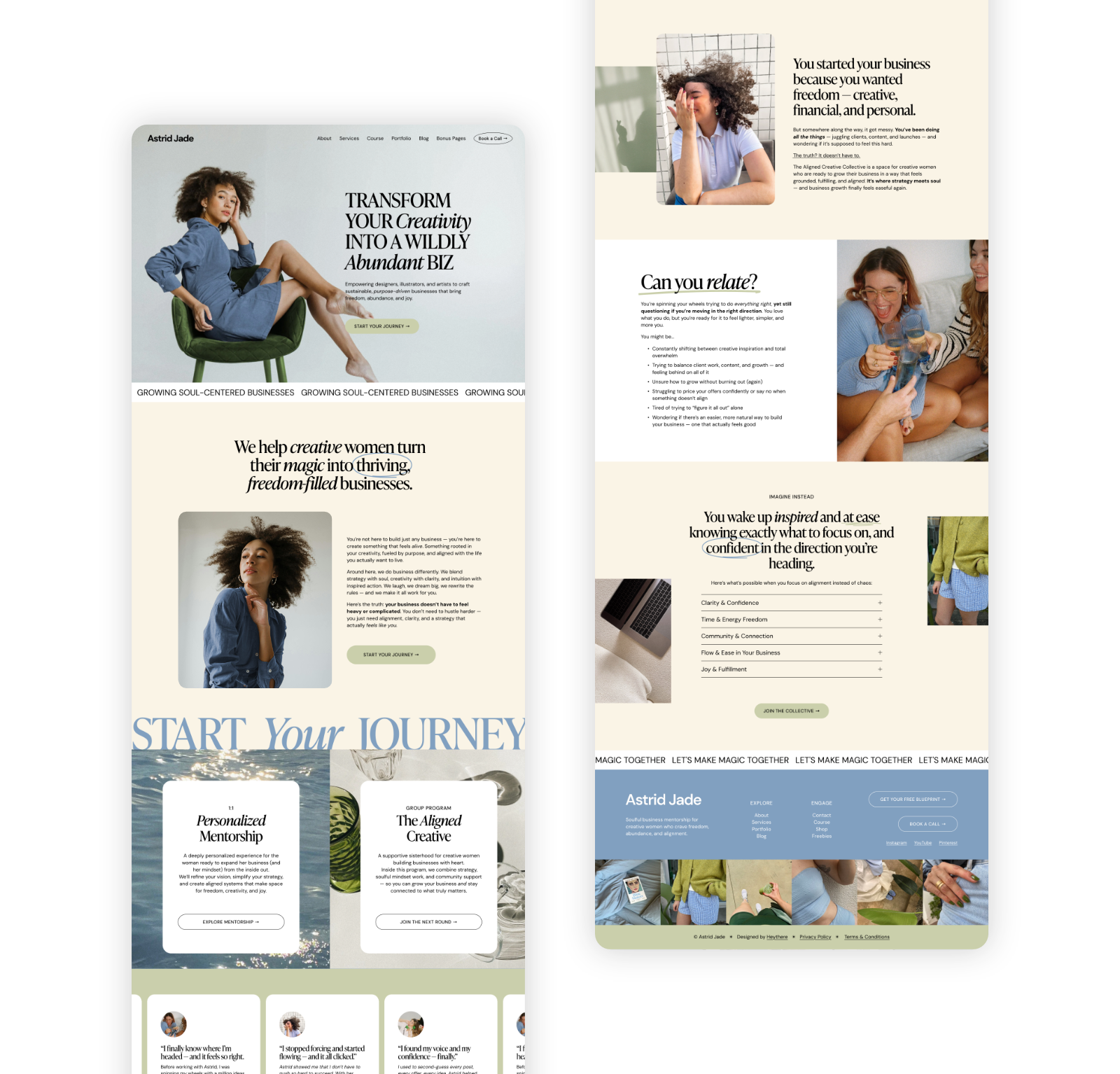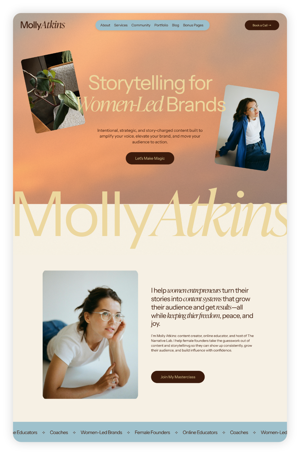 A clean, intentional template designed with purpose and flow. Featuring high-converting layouts and intuitive design so you can share your magic, grow your business, and take total ownership of your website.